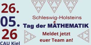 Am 26.05.2026 veranstalten wir erneut Schleswig-Holsteins Tag der Mathematik an der CAU in Kiel. Es erwartet euch wieder ein Teamwettbewerb, sowie spannende Vorträge und Workshops.
